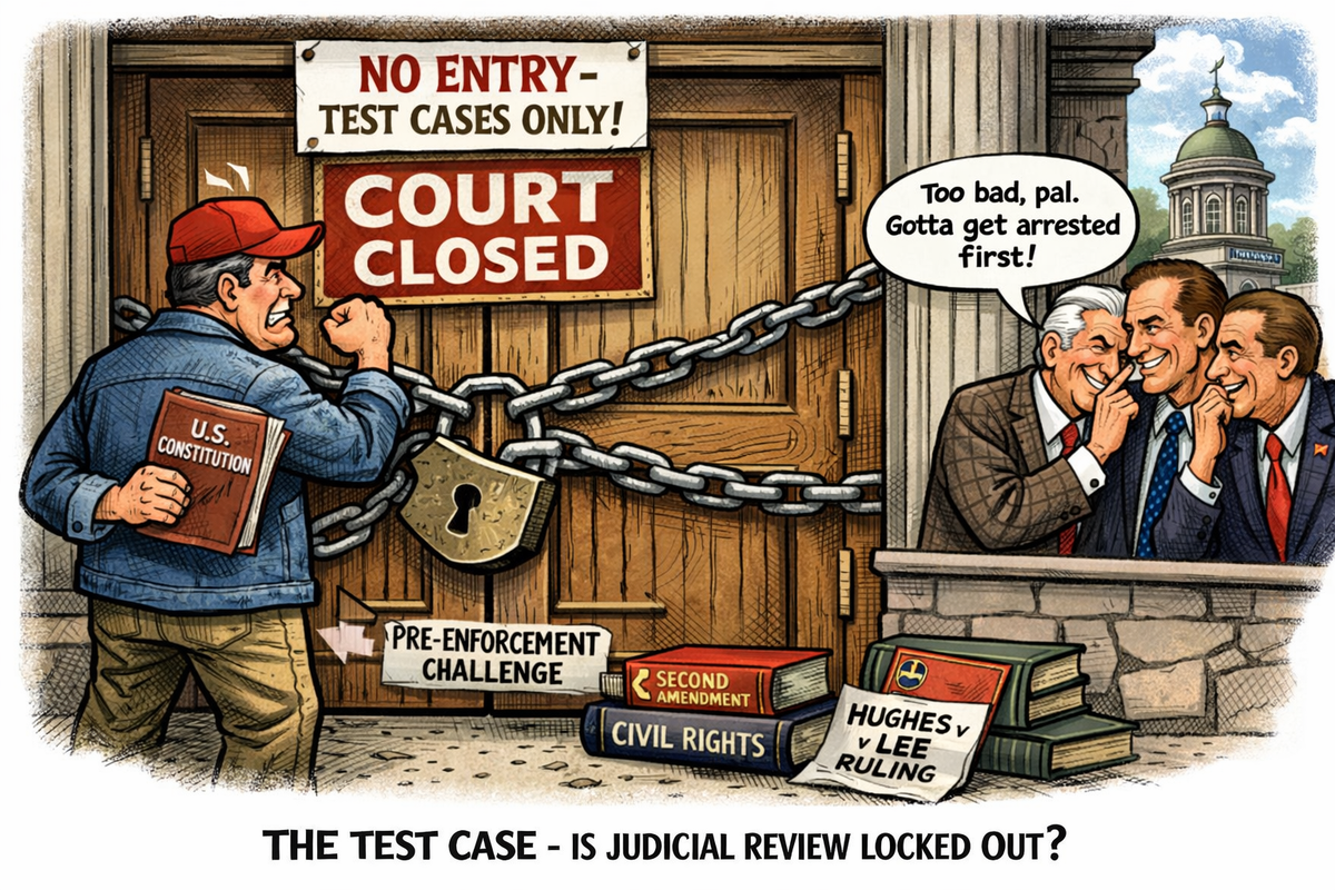 Courts are not intended to function only after damage has been done. Judicial review exists precisely to prevent unconstitutional enforcement before harm occurs. Removing that pathway does not eliminate constitutional questions. It simply raises the cost of asking them.