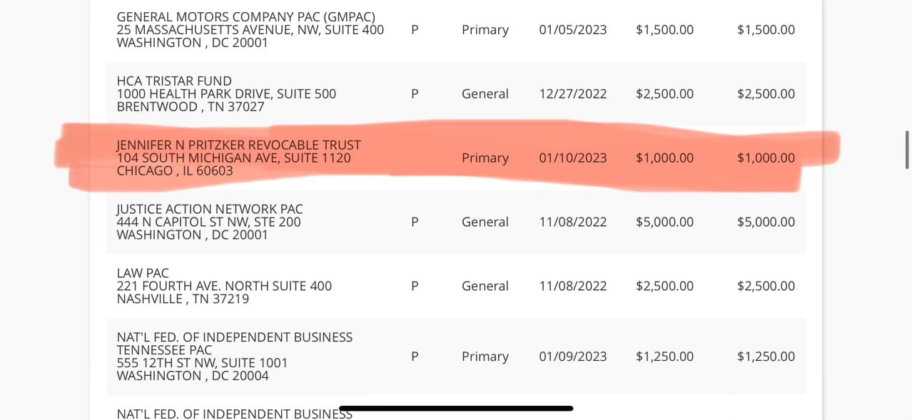 Trans Woman, Cousin To Progressive Illinois Governor Jennifer Pritzker’s $1,000 Donation to Randy McNally’s PAC Revives Old Scandal Amid Tennessee Republican Silence
